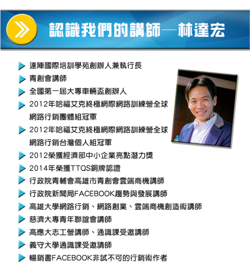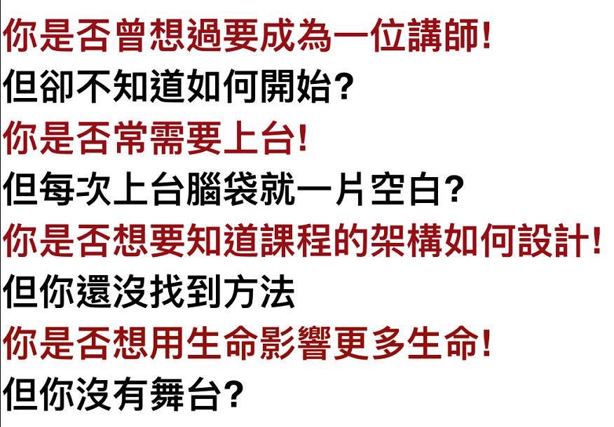 時間:8/15(三)上午九點-晚上10點 8/16(四)上午九點-晚上10點 8/17(五)上午九點-晚上6點 高雄市前鎮區復興四路12號6樓之5(軟體園區)達陣教育文創中心 原價:39800元 早鳥優惠價:32000元