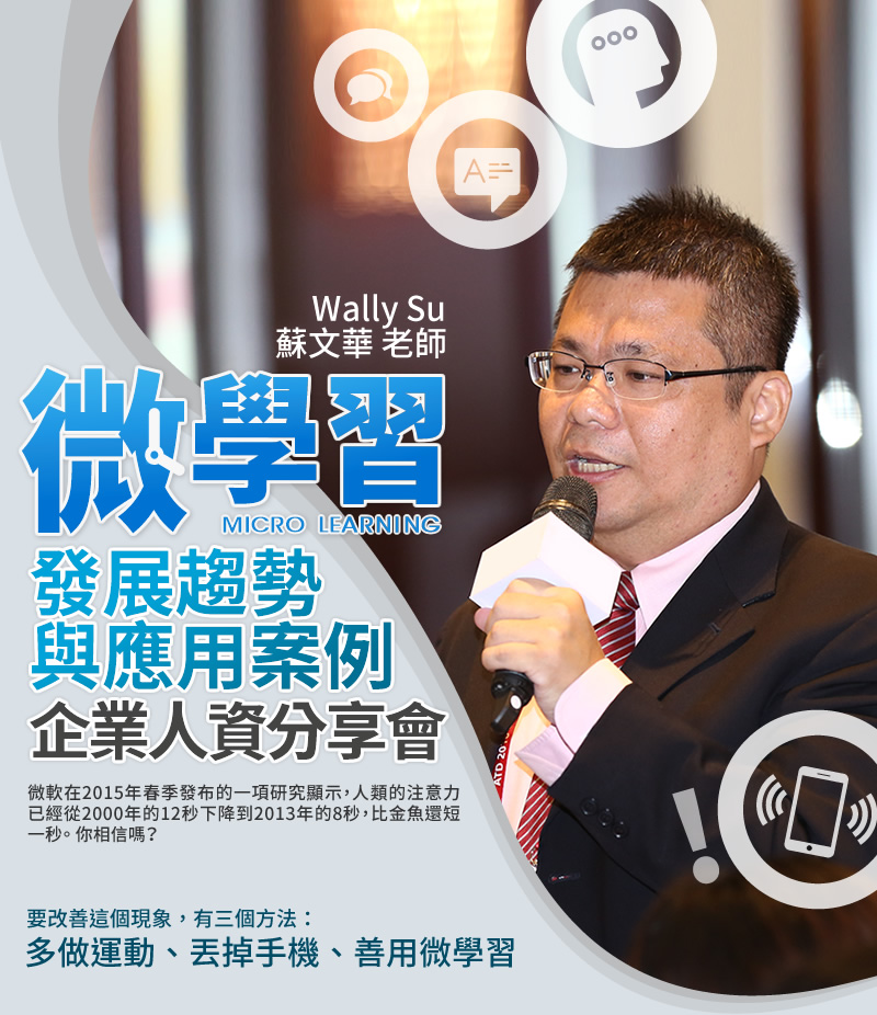 | 13:30~17:00 | 微學習應用模式 | .微學習如何在企業內應用? .微學習應用注意事項 |