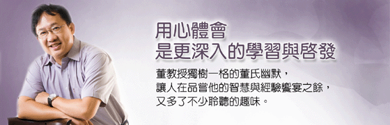 更難能可貴的,董教授獨樹一格的董氏幽默,更讓人在品嘗他的智慧與經驗饗宴之餘,又多了不少聆聽的趣味。